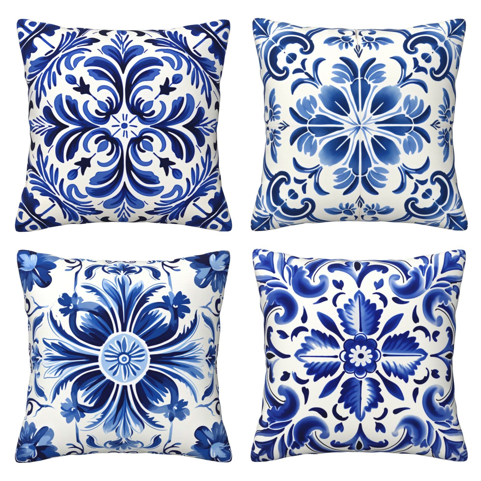 Blue and White Ethnic Throw Pillow Covers Set of 4 Mediterranean Decorative Cushion Covers