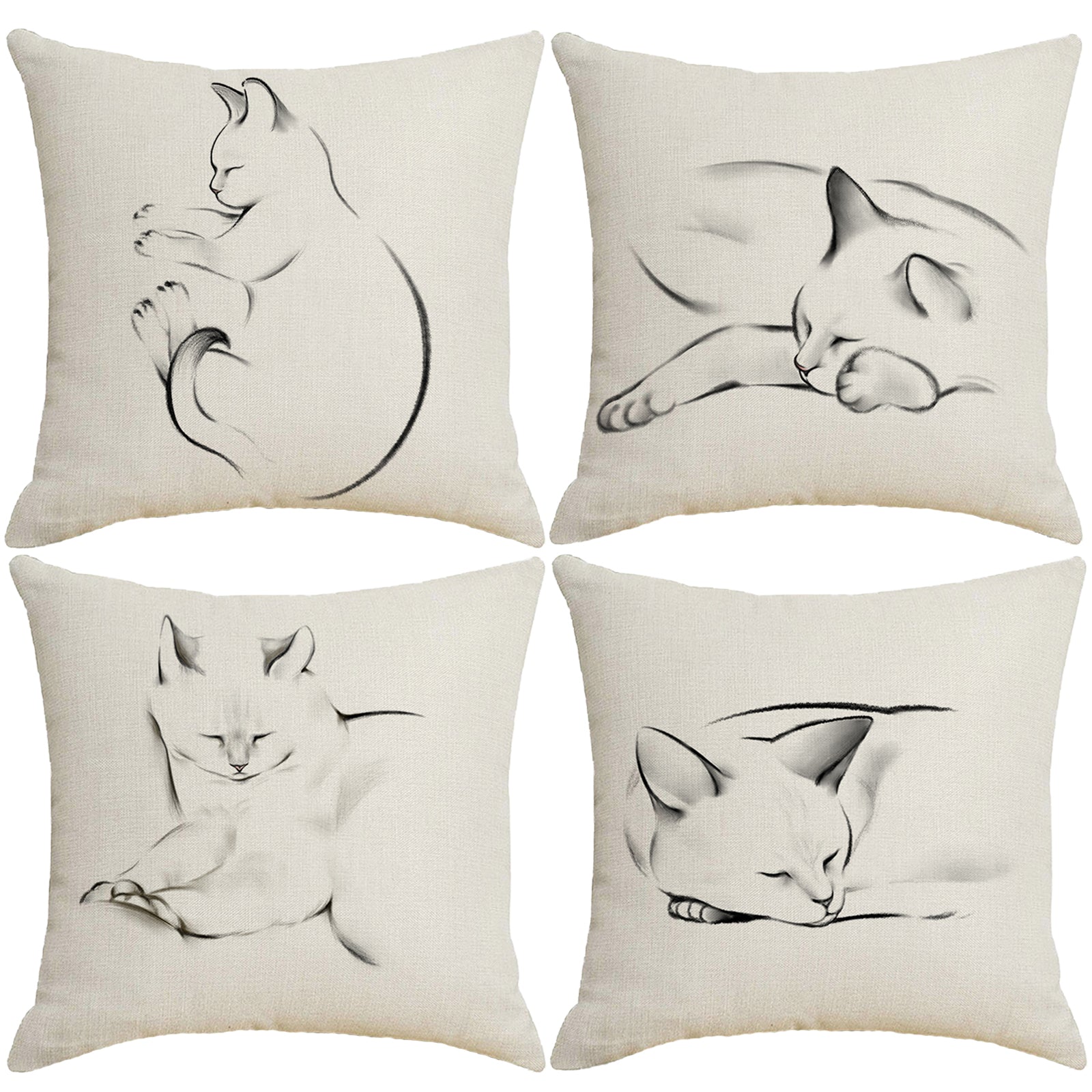 Cat Throw Pillow Covers 18x18 inch Pet Farmhouse Decorative Cushion Covers for Sofa Couch
