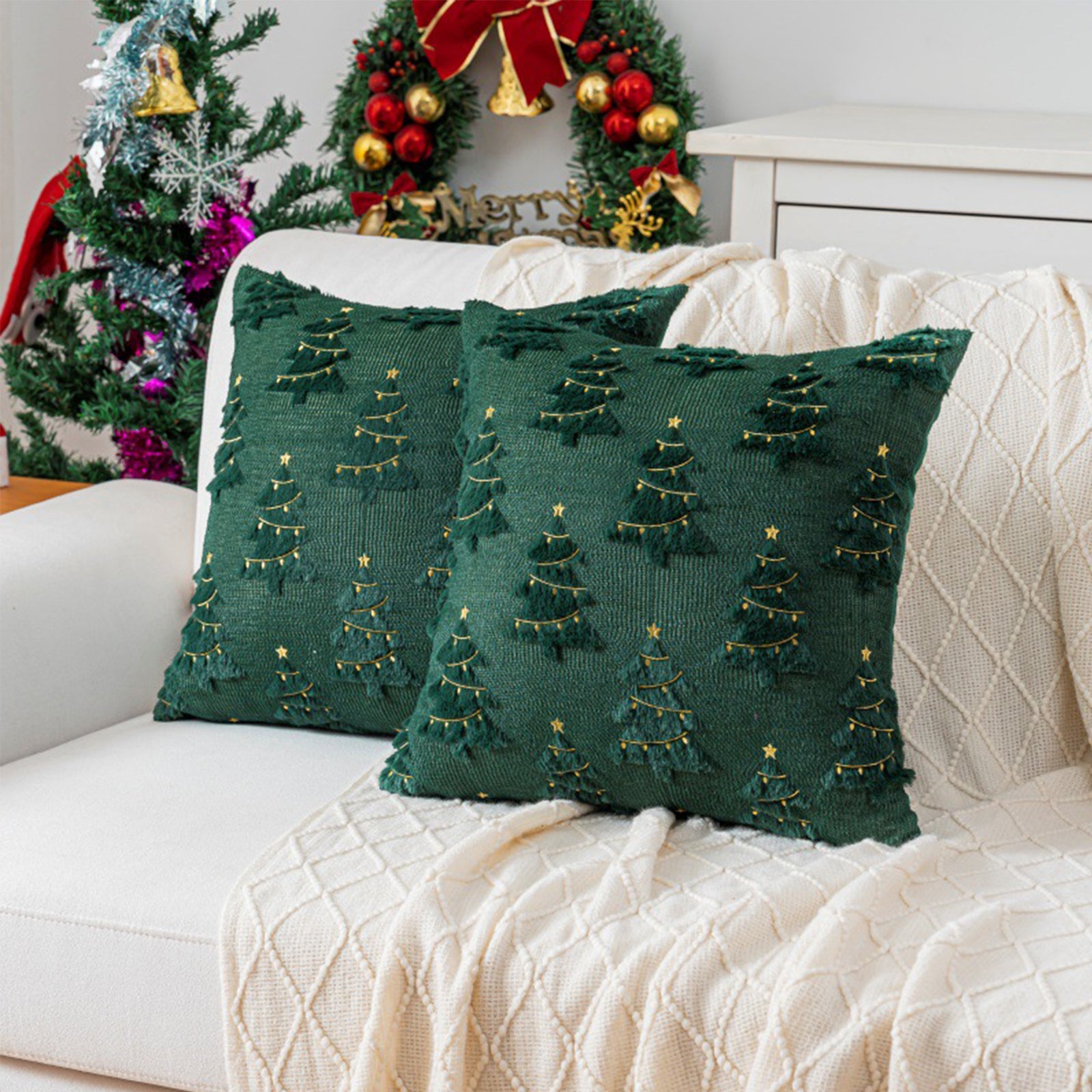 - CHRISTMAS DESIGNS: These pillow covers feature a beautiful and classic Christmas tree design. They add a warm and cozy layer to your home during the cold winter months, making your living space the perfect place to relax and enjoy the holiday season.