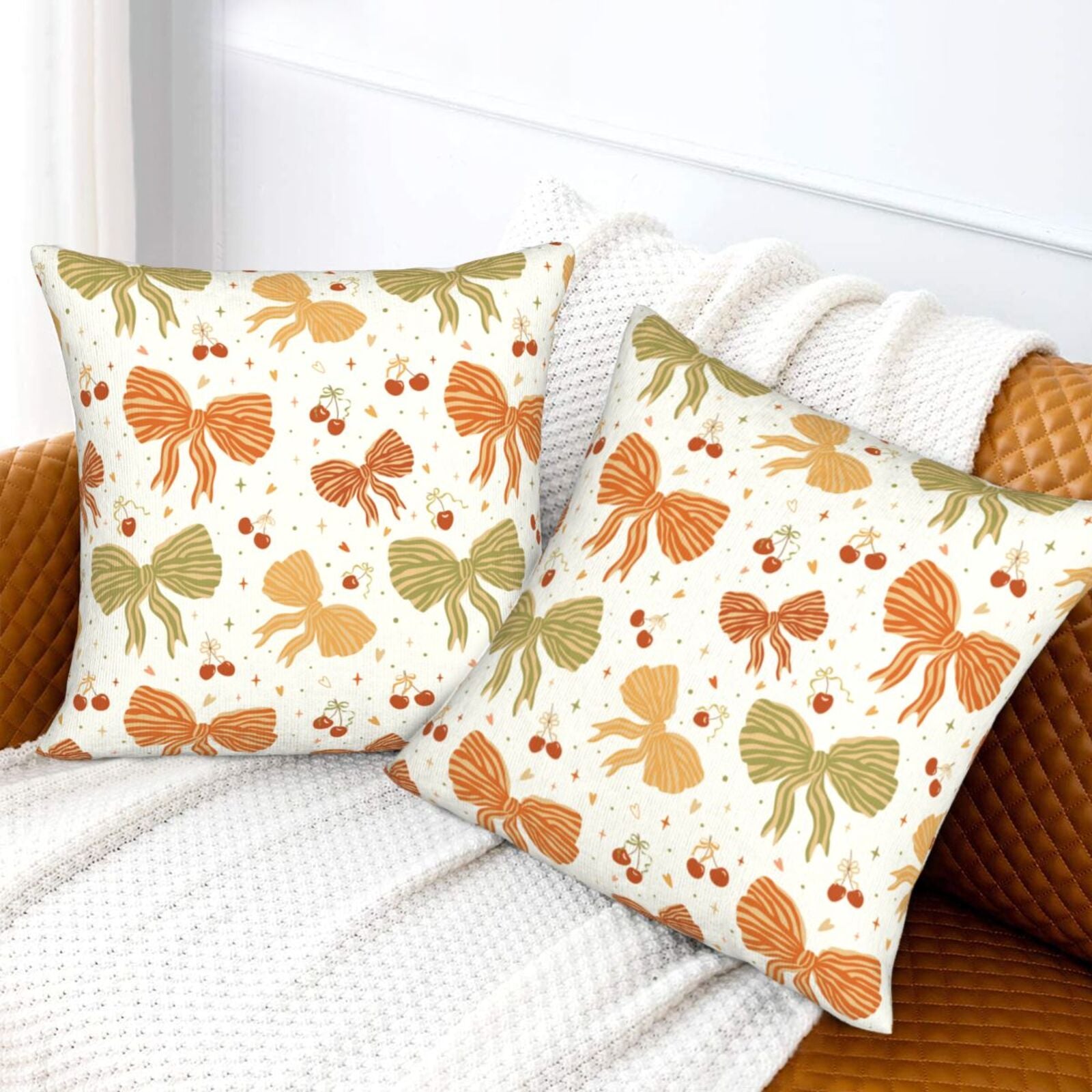 Autumn Harvest Decorative Pillow Covers - Pumpkins, Bows & Fall Themes (Set of 2)
